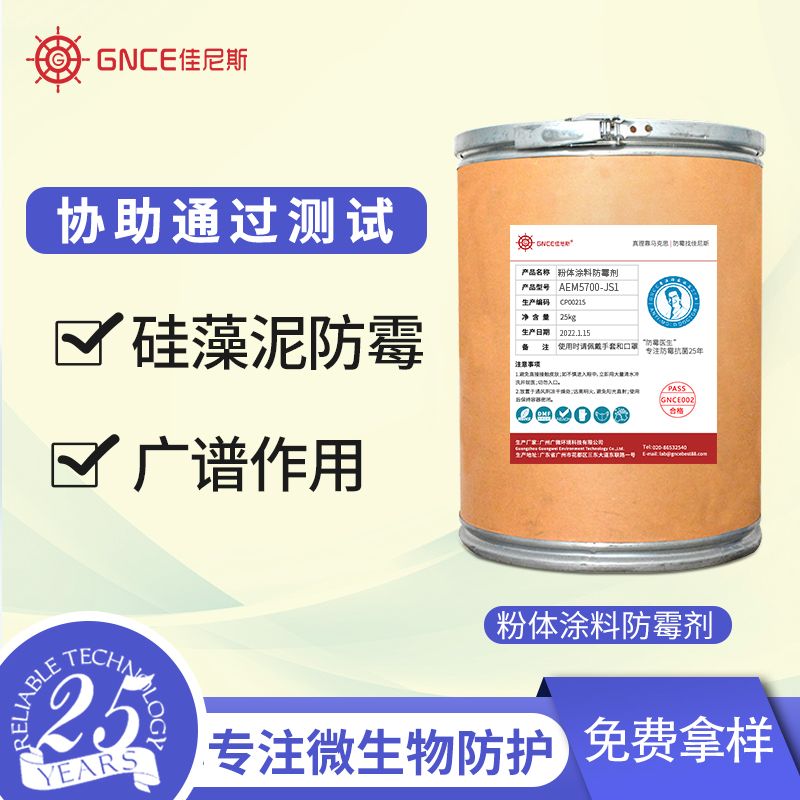 2.使用量为 0.5%-1.0%,先少量添加均匀混合后,再大量添加,形成含有防霉剂的粉体涂料。