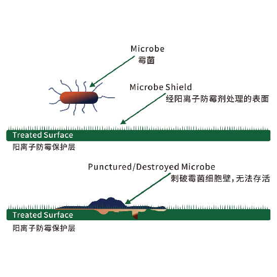 成熟地将阳离子专利技术应用至防霉抗菌行业,研发出适用于多个行业的防霉抗菌产品,不断推进防霉抗菌工程的进步,为千万企业、家庭提供强有力的防霉抗菌方案,为其健康生产、生活保驾护航!